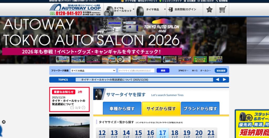 コストパフォーマンスと利便性で業界をリードする2大オンラインサービス「タイヤフッド(TIREHOOD)」と「オートウェイ(AUTOWAY)」というところです。